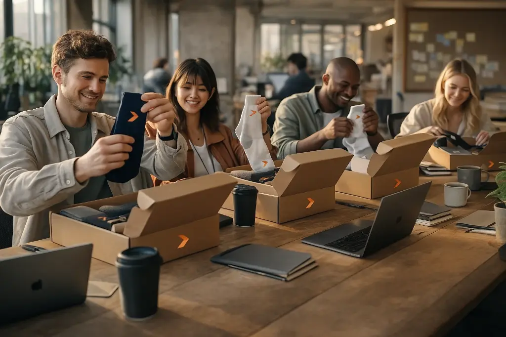 - Regalo corporativo premium: jacquard + packaging personalizado