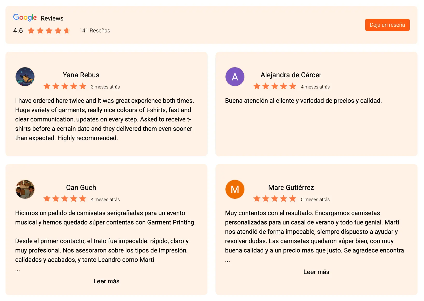 Contamos con más de 40 años de experiencia en la impresión de camisetas y productos promocionales. Somos el aliado perfecto para empresas que buscan destacar su identidad de marca a través de ropa y productos promocionales únicos. Ya sea para campañas de marketing, eventos corporativos o uniformes de equipo, ofrecemos soluciones rápidas y adaptadas a tu presupuesto. Tenemos más de 100 reseñas 5 estrellas en nuestro perfil de Google My Business.