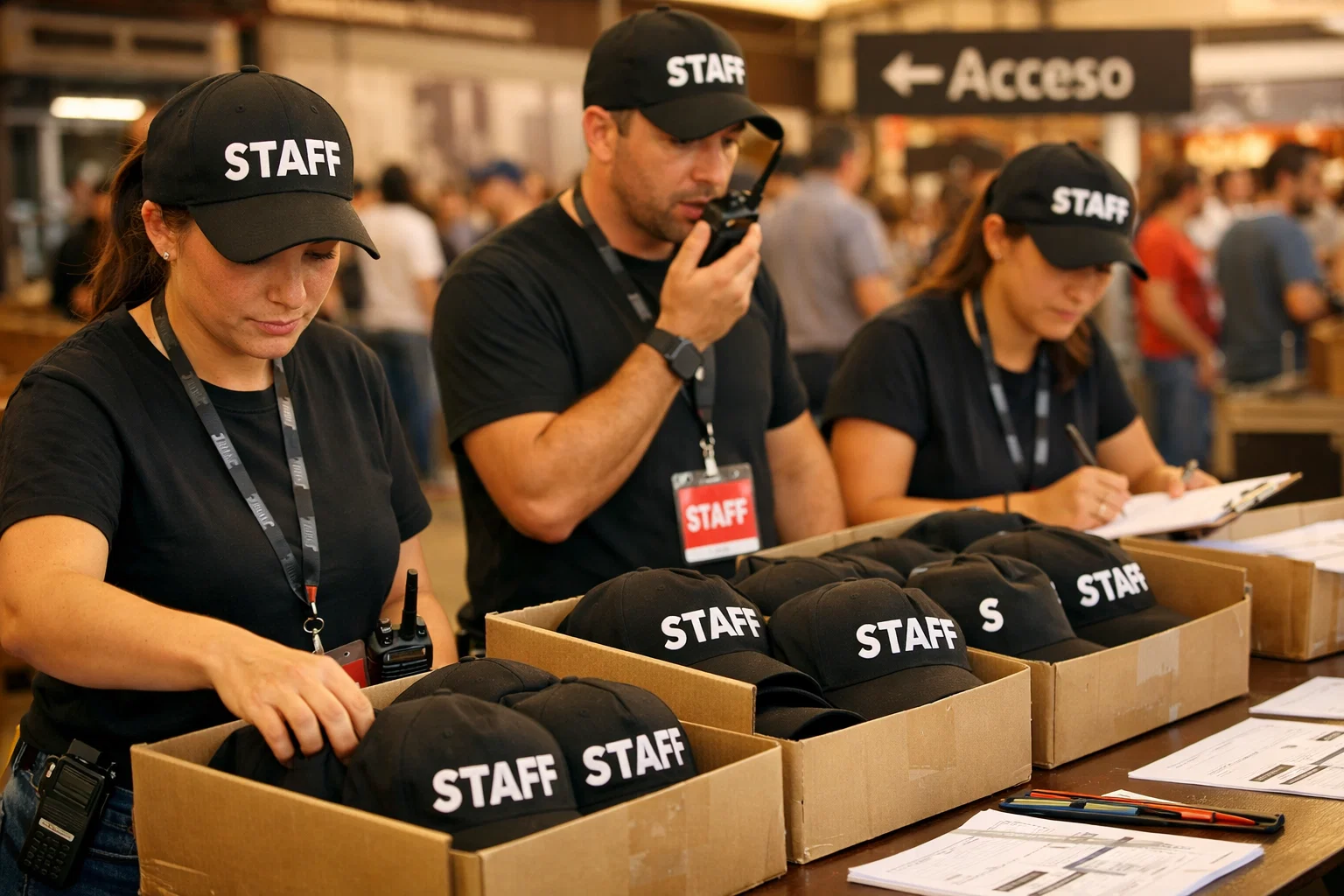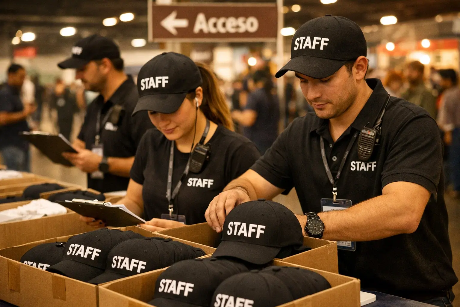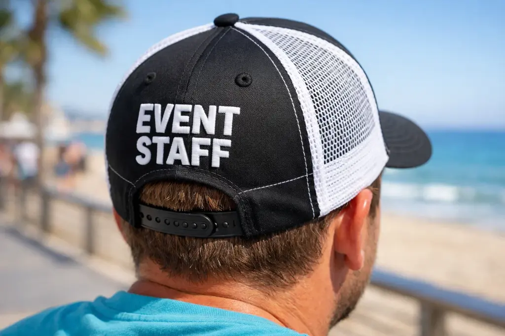 La demanda no es solo estética: muchas gorras se usan como protección solar para personal de eventos y equipos técnicos.